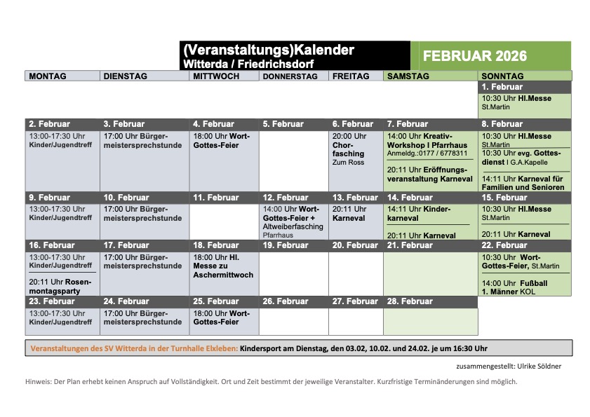 Veranstaltungsplan Witterda