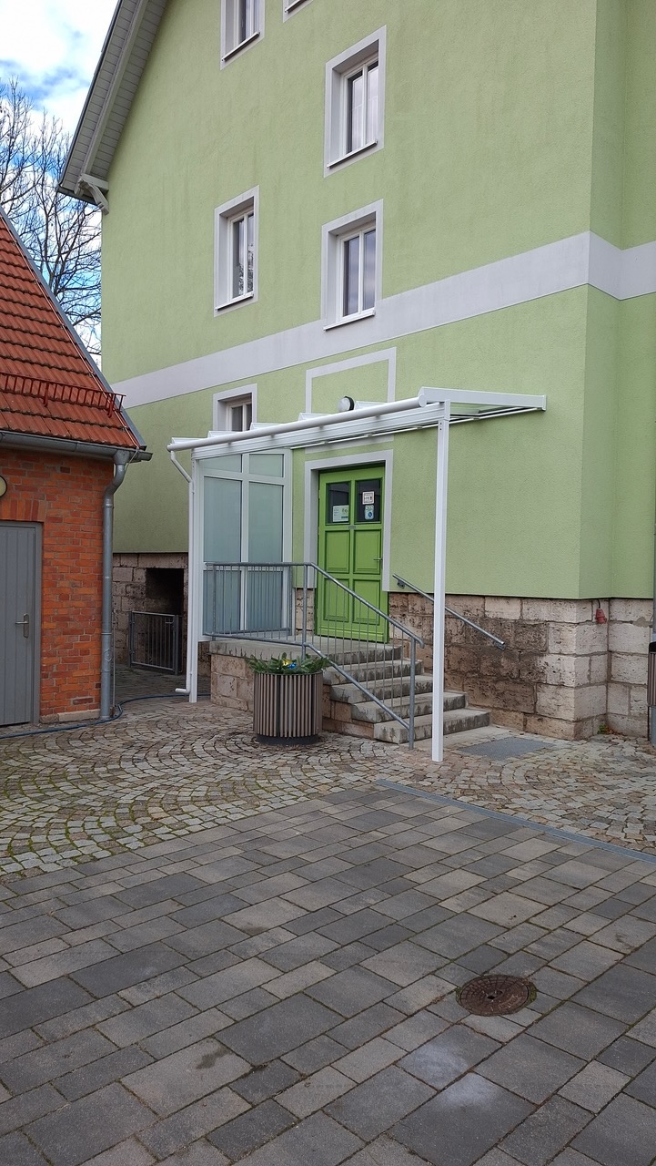 Andisleben. Der Hofein- bzw. -ausgang des Dorfgemeinschaftshauses war zunächst nicht vor Witterung, insbesondere vor Niederschlägen geschützt. Das erschwerte bei schlechtem Wetter den Zu- bzw. Ausgang.