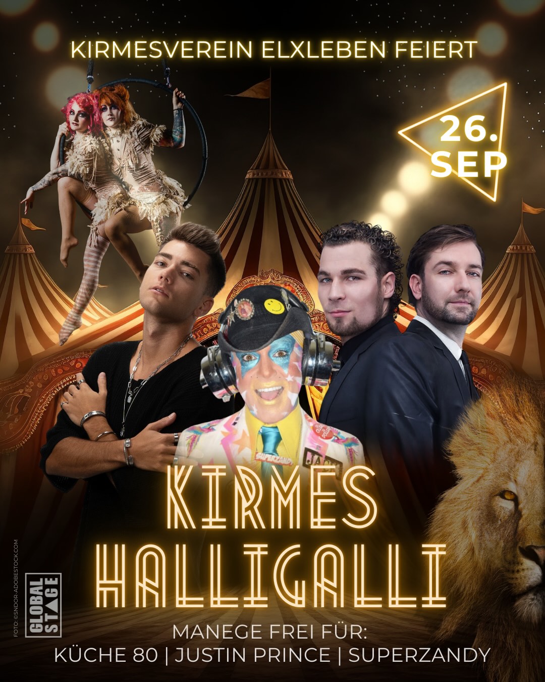 Am Abend bringt ab 21 Uhr das „Kirmes Halligalli“ mit „Küche 80“, „Justin Prince“ und „Superzandy“ die Festhalle zum Beben.