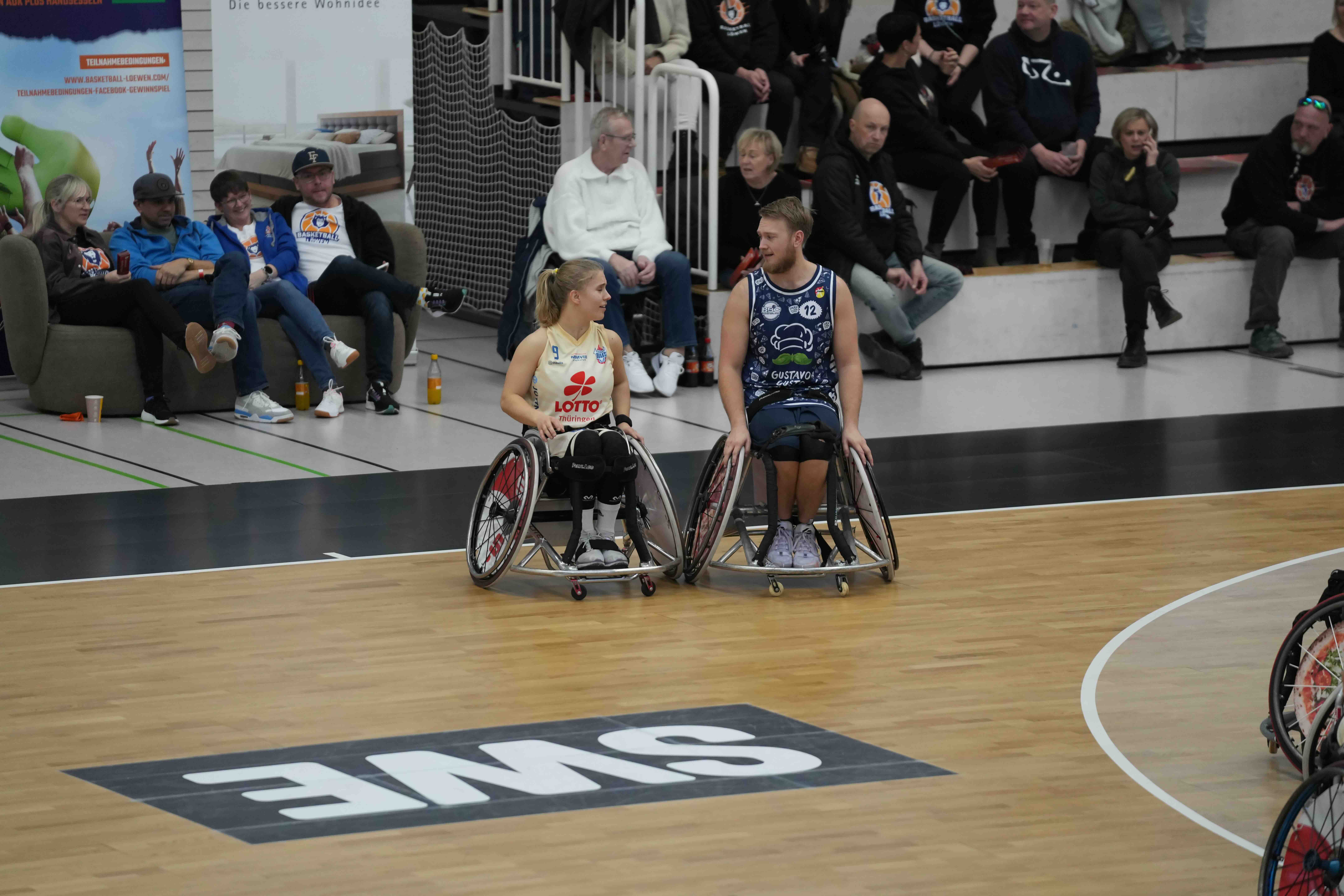 Keine 24 Stunden nach dem 78:65 beim Dauerrivalen RSV Lahn Dill wartete auf die RSB Thuringia Bulls das nächste Highlight. Der inklusive Doppelspieltag mit den CATL Basketball Löwen ist traditionell nicht nur ein fester Bestandteil des Kalenders, sondern beiden Vereinen eine absolute Herzensangelegenheit. Die Schirmherrschaft übernahm Thüringens Ministerpräsident Mario Voigt. Stefan Gruhner, Minister für Bundes- und Europaangelegenheiten, Sport und Ehrenamt und Chef der Staatskanzlei, besuchte die Veranstaltung und hob in seinem Grußwort vor allem das vielfältige Engagement beider Protagonisten hervor.