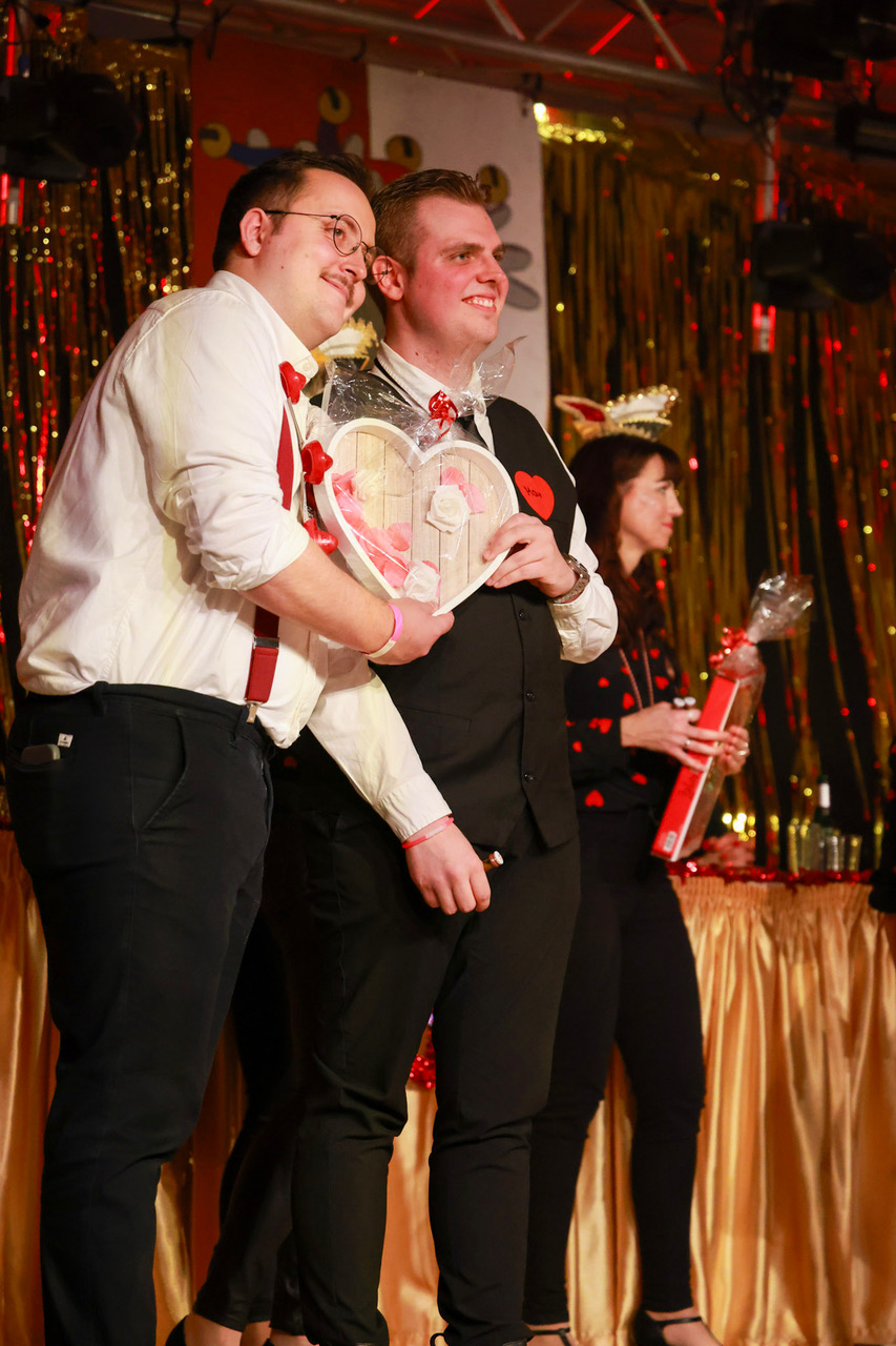 Da der Valentinstag auf das Karnevalswochenende fiel, haben die „Elxleb’er Elche“ das Thema der Liebe in all ihren Facetten inszeniert – von Freundschaft über erste vorsichtige Annäherungsversuche, späterhin aufregende Datings zur Wahl der oder des Richtigen, über Schmetterlinge im Bauch bis hin zu käuflicher Liebe.
